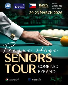 On behalf of the European Pyramid Federation Board we are delighted to invite you to take part in the Seniors tour 2026 Combined Pyramid first stage, that will be held at the Billiard Club “LUCKY BALL” (Mukarovskeho 1985, Prague 13, 155 00, Czech Republic) 20 – 23 March 2026.